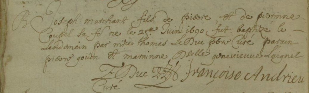 signe Jos marchandBaptême : 25 juin 1690 à Guichen 35580