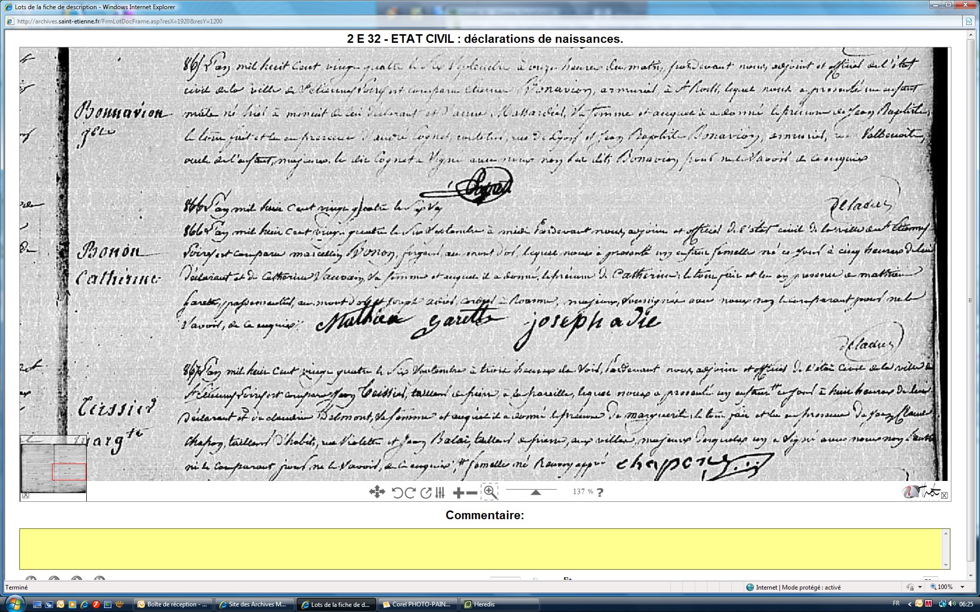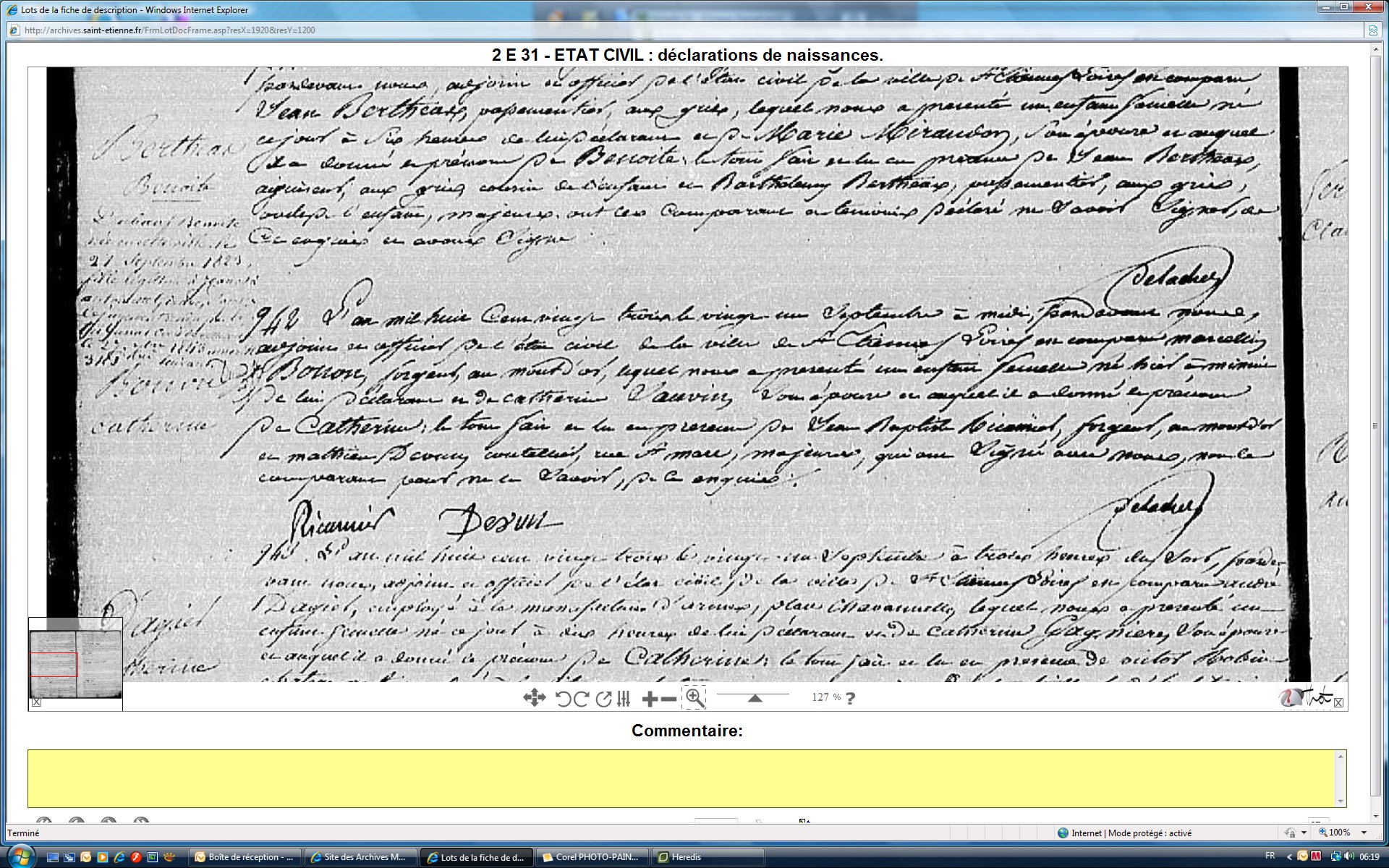 23/2/1842?Décès : 5 février 1847 à Saint-Étienne 42100 Rue des Capucins