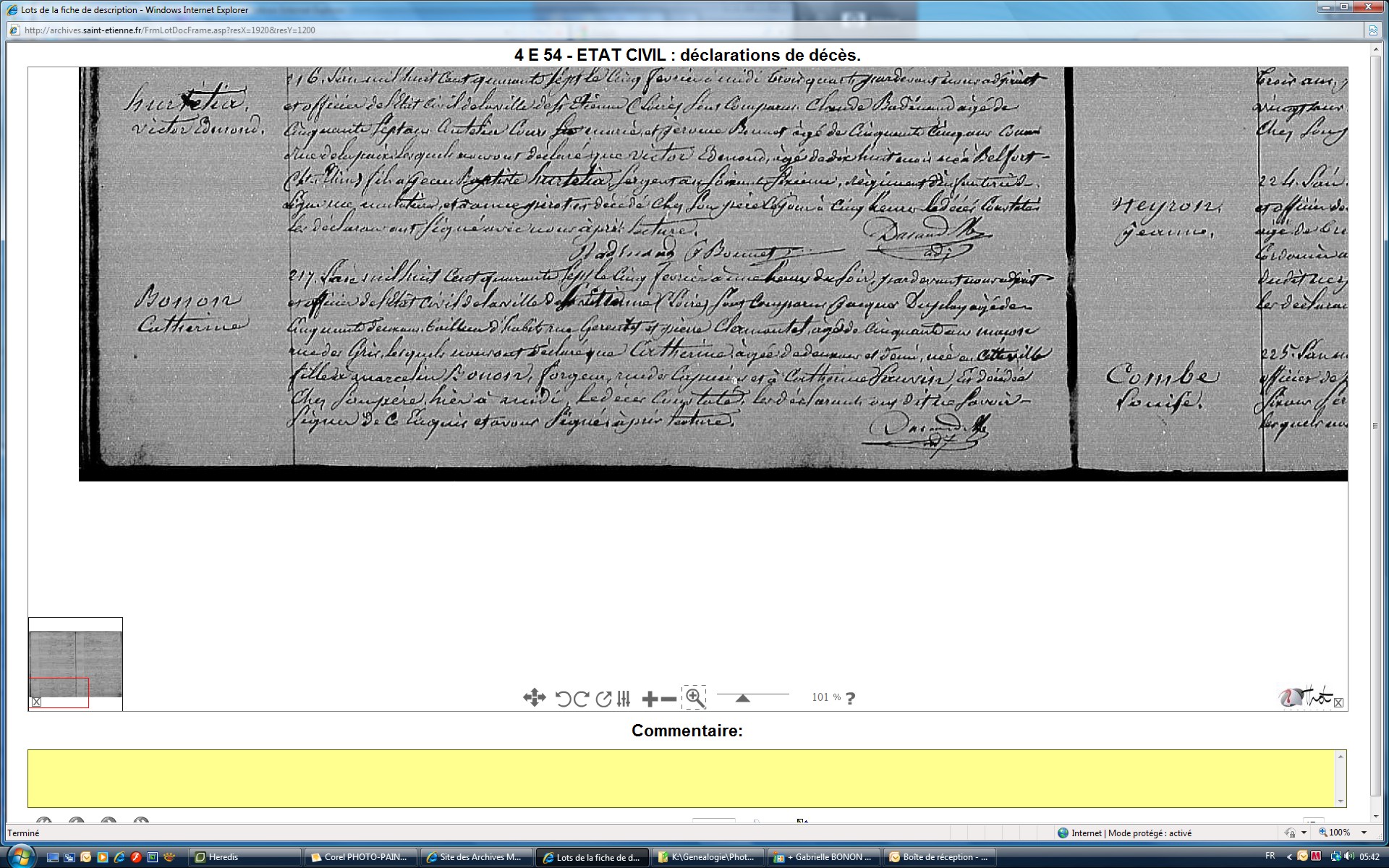Naissance : calculée juillet 1821 Décès : 21 janvier 1823 à Saint-Étienne 42100 Rue Tarantaise