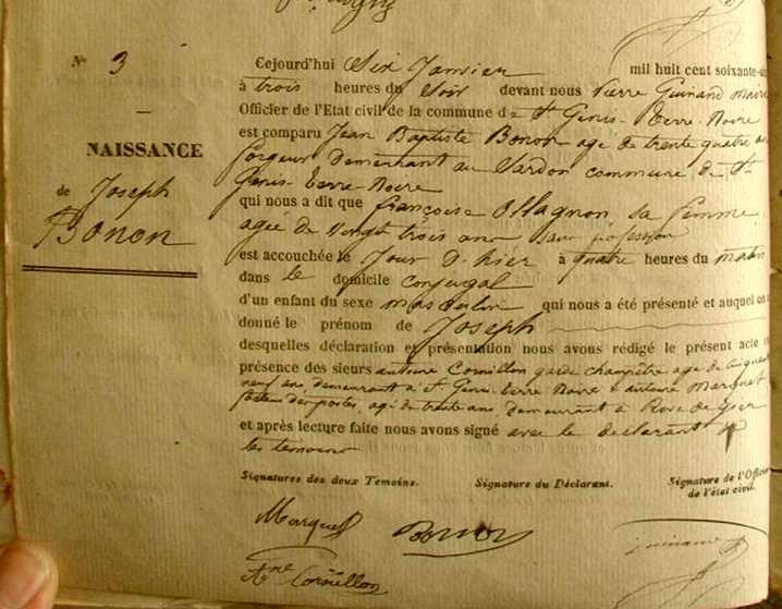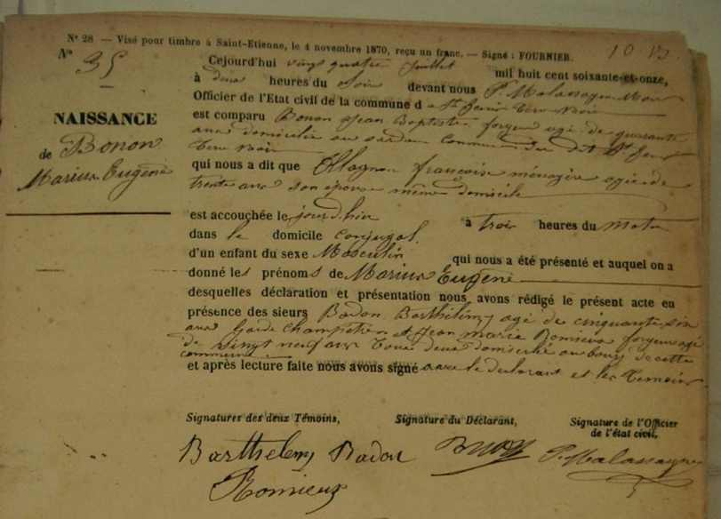 Père : BONON Jean Baptiste ( 1831 - > 1871 )
