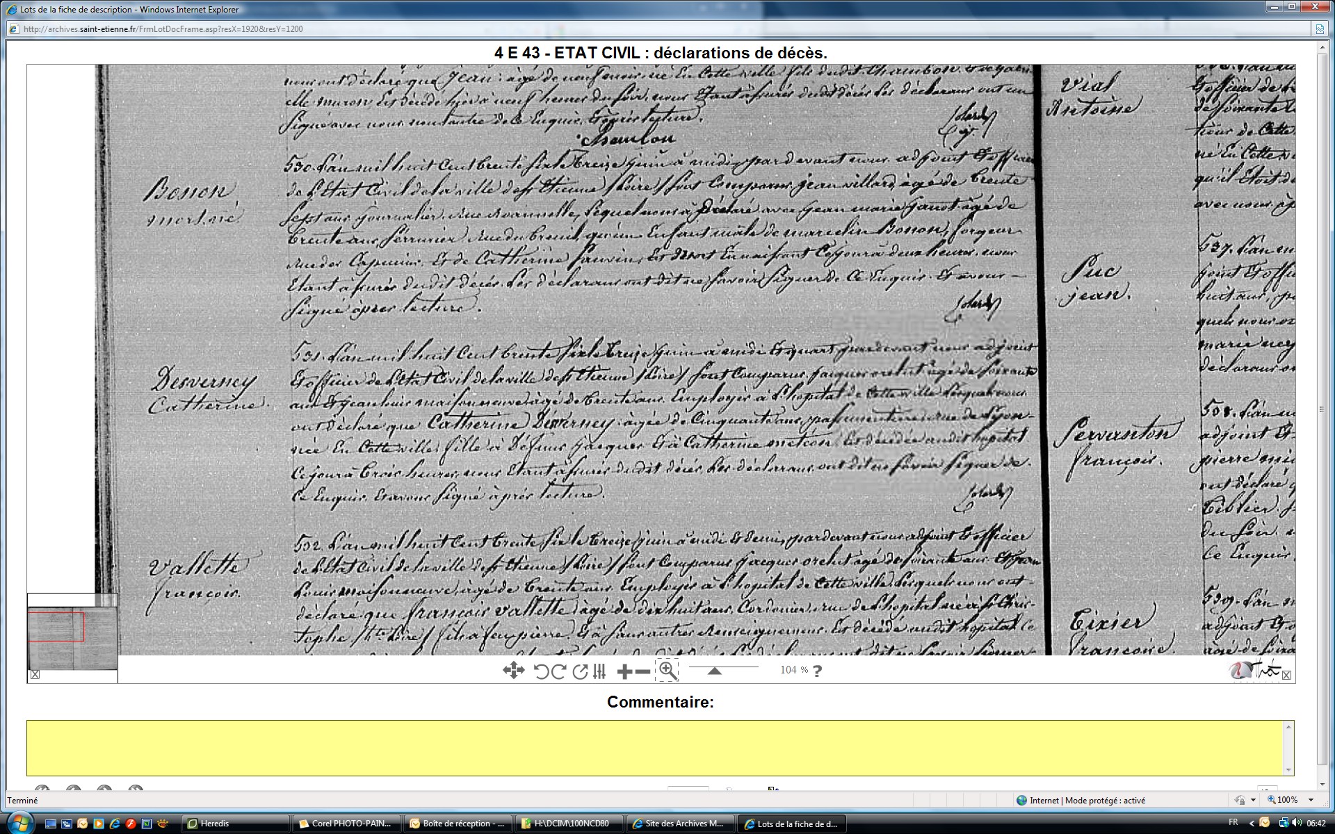 Naissance : 13 juin 1836 à Saint-Étienne 42100 Rue des Capucins Décès : 13 juin 1836 à Saint-Étienne 42100 Rue des Capucins