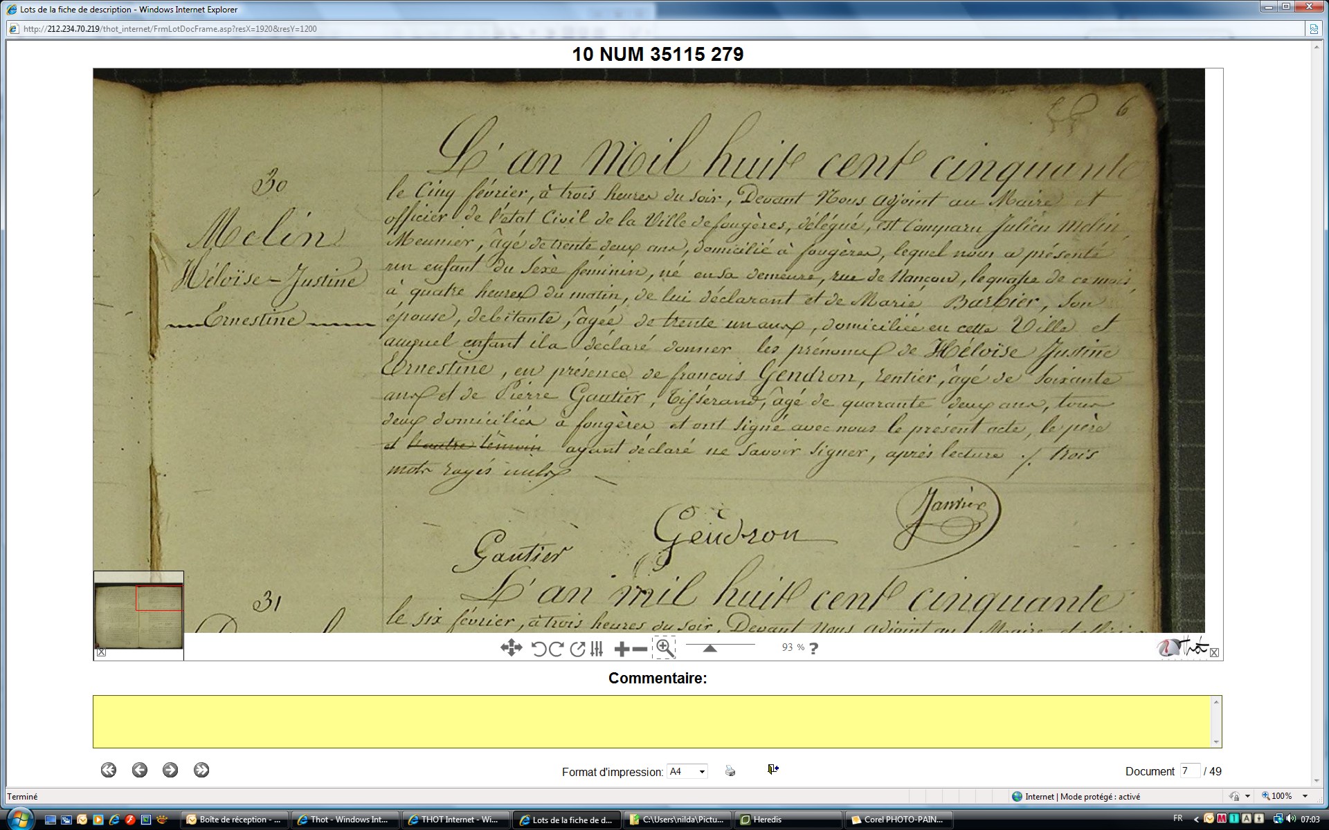 Naissance : calculée 1824 à Beaucé 35133 Décès : 27 janvier 1858 à Fougères 35300 Grande Rue
