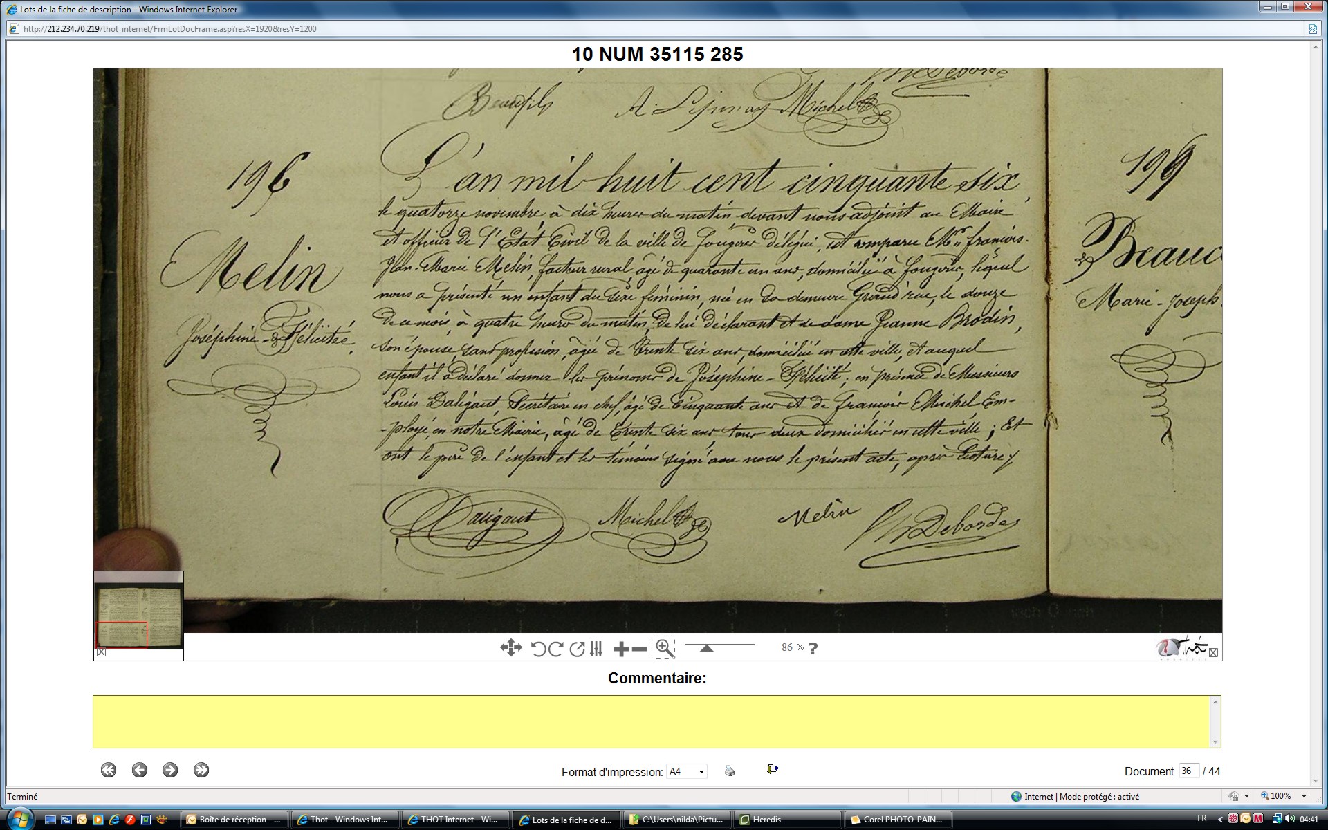 présence de Gillette MELIN (tante)et Michelle MELIN (pas de naissance ni décès)