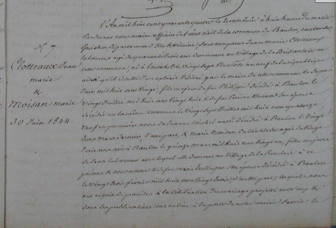 Union : CLOTTEAUX Jean Marie ( 1801 - 1846 )
