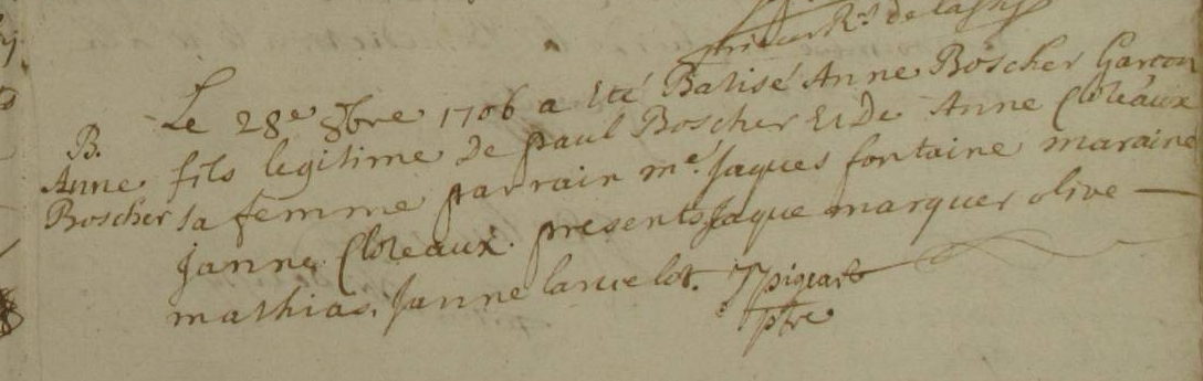 Père : BOSCHER Paul ( (c) 1673 - 1736 )