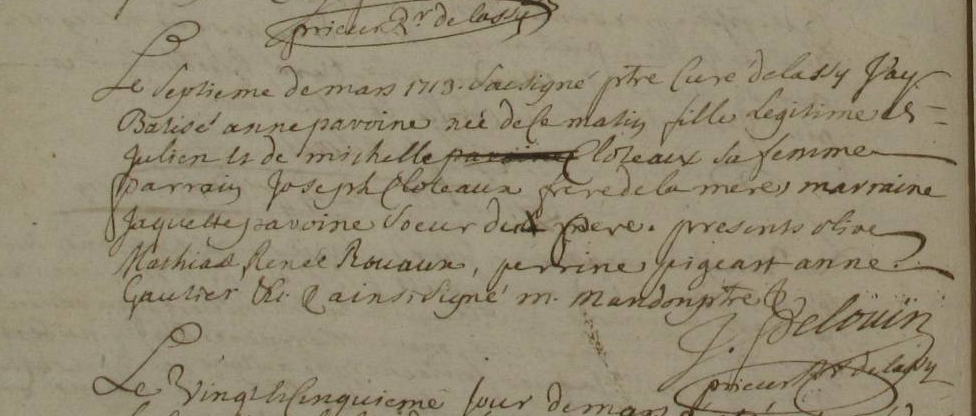 Mère : CLOTEAULT Michelle ( 1690 - > 1720 )