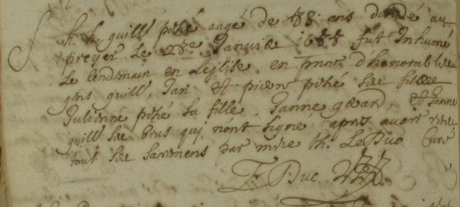 1667 M JOURDRAN Guillemette avec PEHE G. OuiInhumation : après 6 juillet 1690 à Guichen 35580
