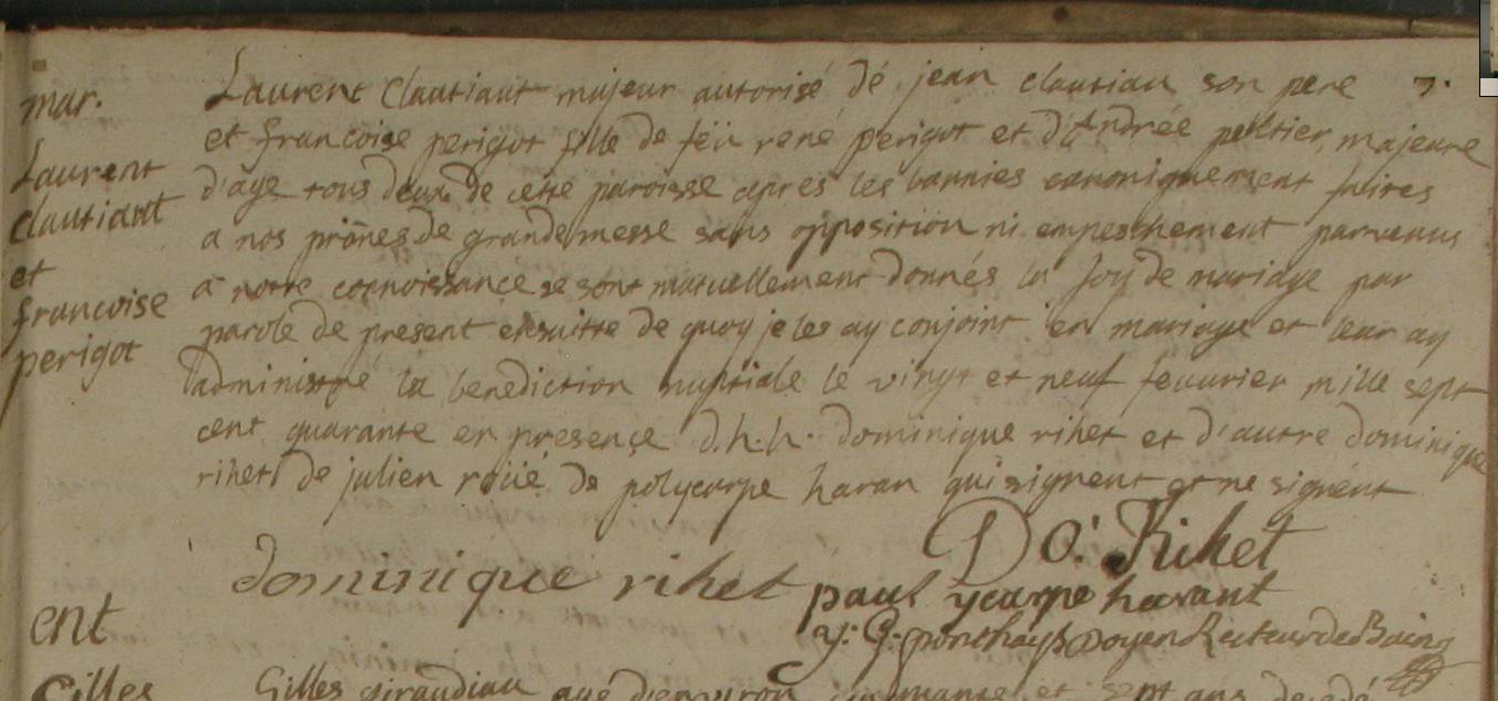 Témoins :CLOTIAULT Jean ( ~ 1679 - 1740 )