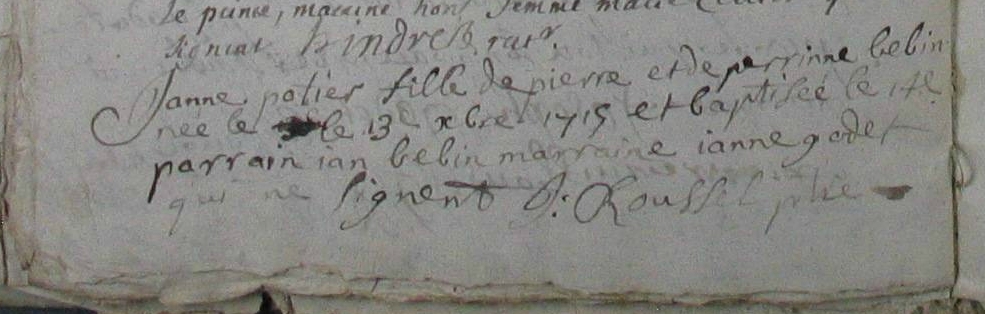 Père : POTIER Jean ( 1668 - 1748 )