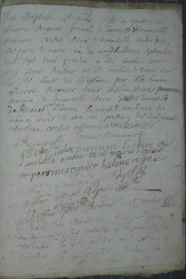 Père : REGNIER Jean ( 1644 - 1709 )