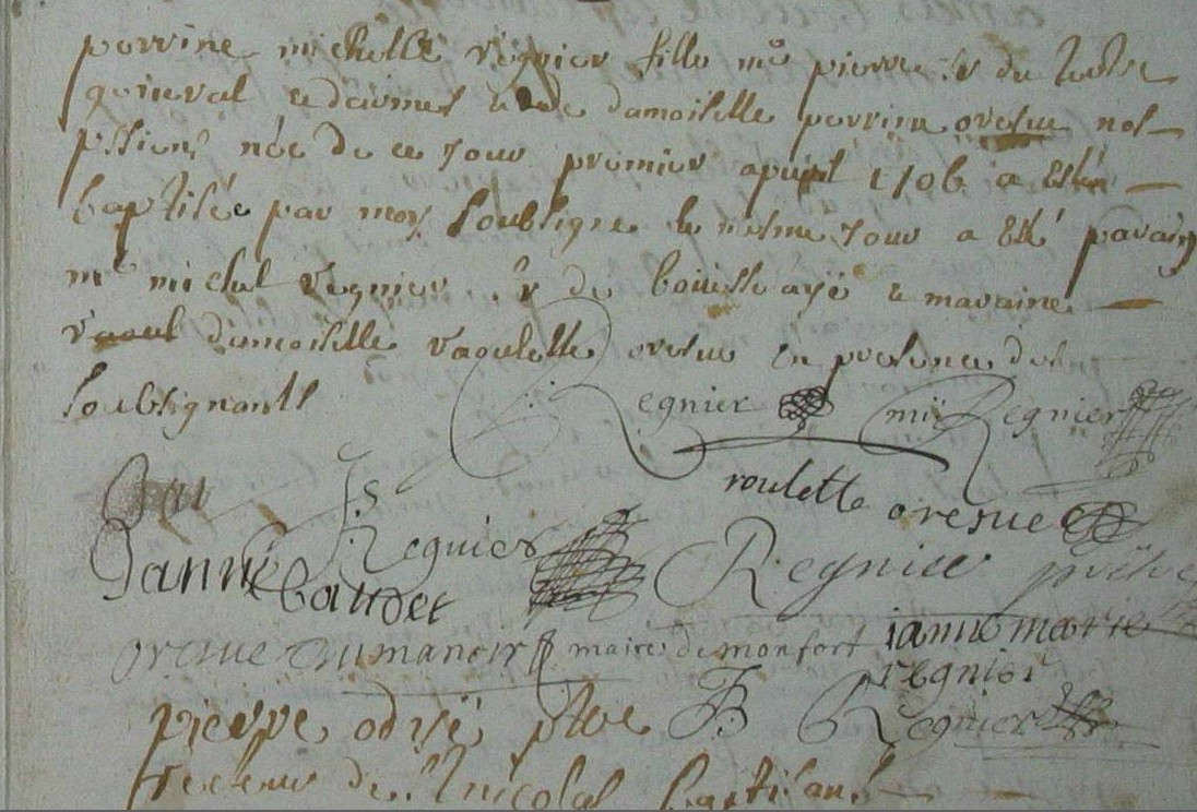 Témoin :REGNIER Michel ( < 1686 - > 1706 )