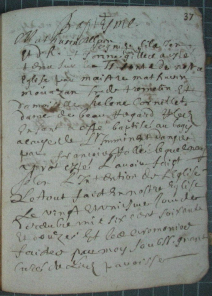 Baptême : 21 décembre 1672 à Montfort-Sur-Meu 35160 Saint Nicolas