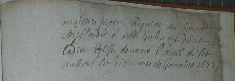 François REGNIER 1621-1689 marié entre 1638 et 1646 avec Jeanne LUCAS ca 1620-1687
