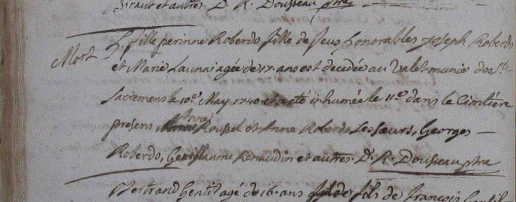 Enfants : ROBERDO Jeanne Marguerite ( 1744 - ? )