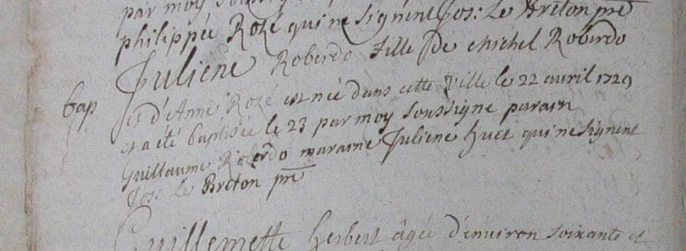 Père : ROBERDO Michel ( 1671 - 1733 )