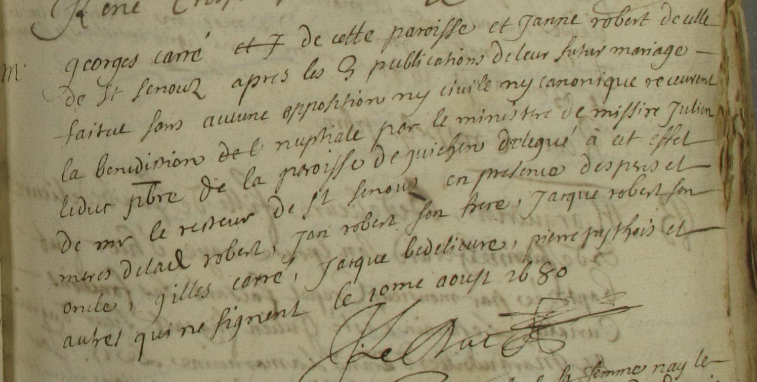 Mariage religieux : 10 août 1680 à Guichen 35580