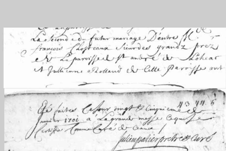 Nom et prénom du parrain Cloteaux Julien, fils Pierre