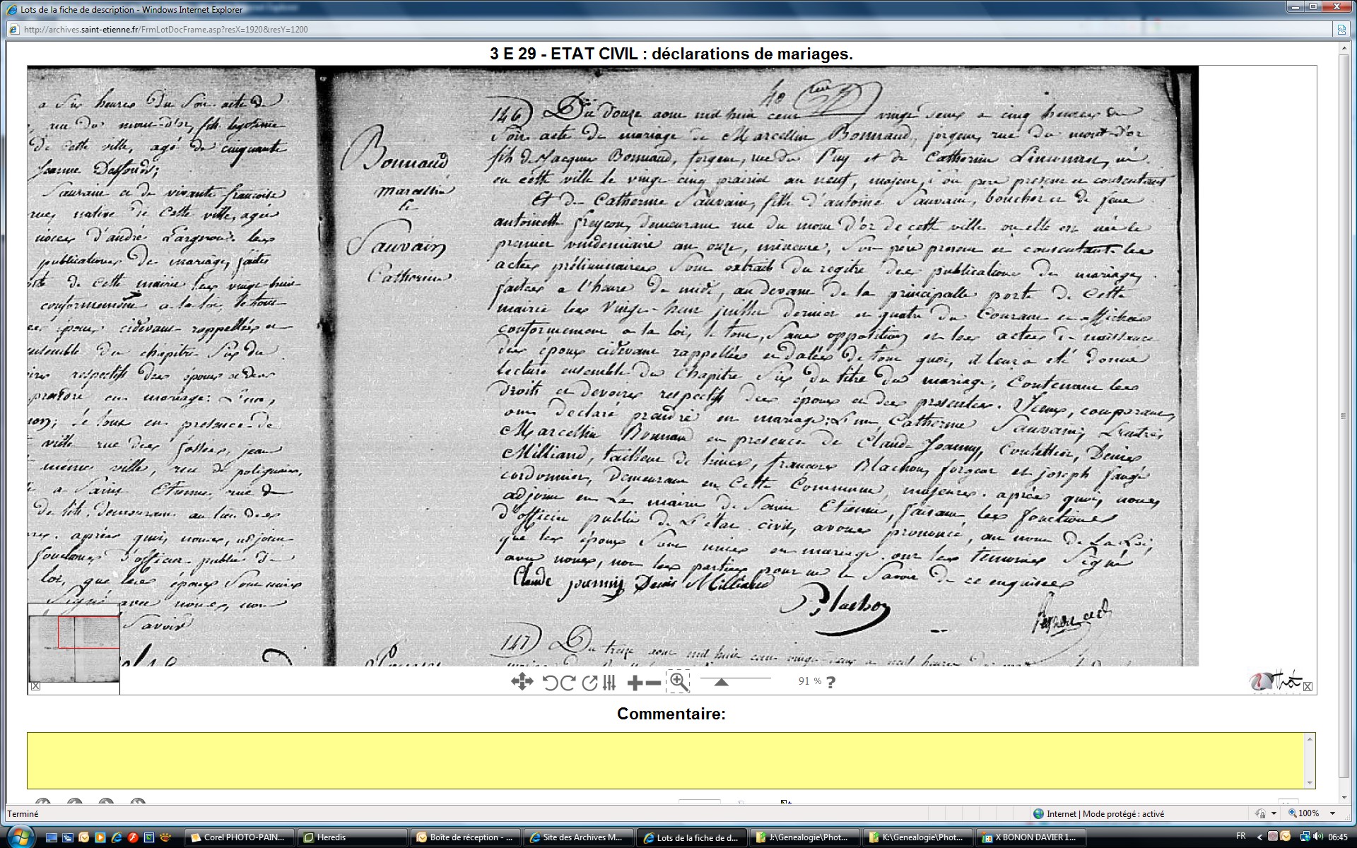 Claudine SAUVIN 1767-Née le 16 septembre 1767 - Saint Etienne Mariée le 8 février 1796 , Saint Etienne,Loire,France, avec Joseph RENODIER 1766- dont