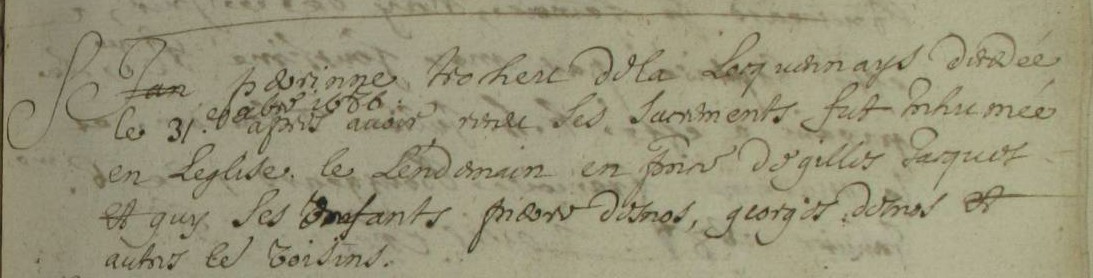 à prendre avec beaucoup de précautions Perrine TROCHEU inhumé en présence de Gilles Jacques et Guy ses enfants mais le patronyme n'est pas indiqué!!! Le mariage existe sur Guichen (autre couple LEGENDRE Perrine TROCHEU existe mais autre date de décès)Décès : 31 décembre 1686 à Guichen 35580 la Locquennays