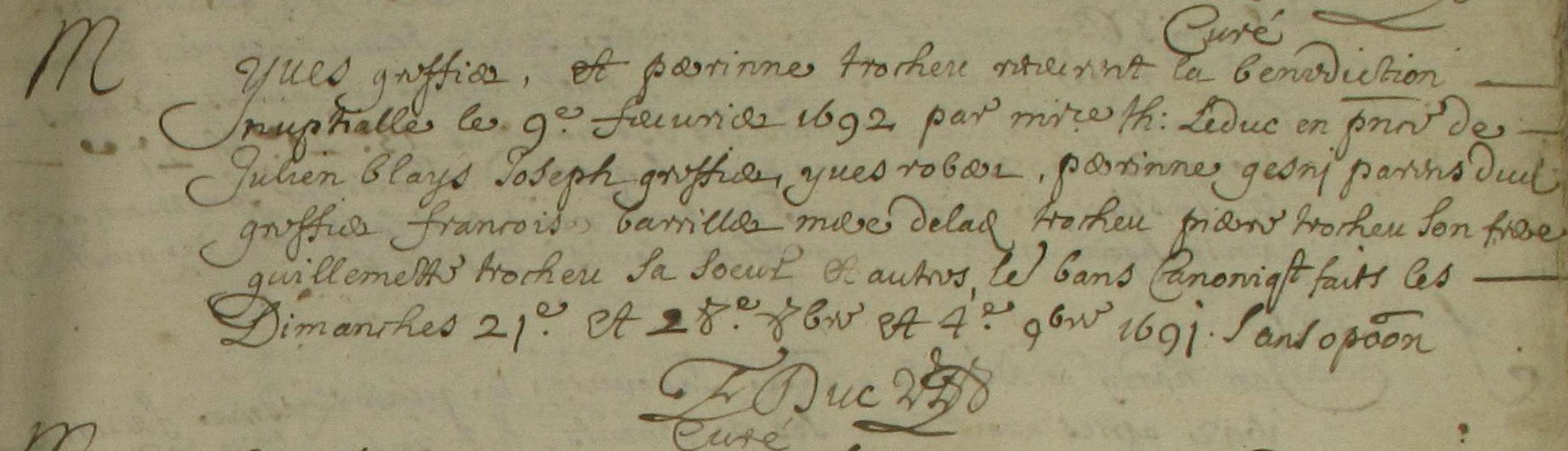 Mariage religieux : 9 février 1692 à Guichen 35580