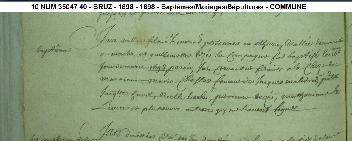 parrain : Mire Jan Vallée oncle paternel