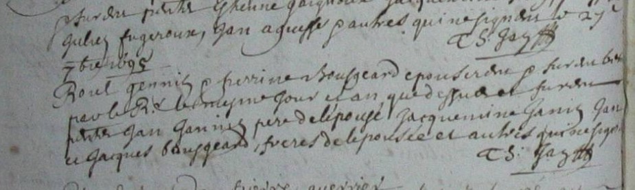 Baptême : avant 1632 à Guichen 35580 Décès : 11 mars 1663 à Guichen 35580 village de la grande Sadouvre