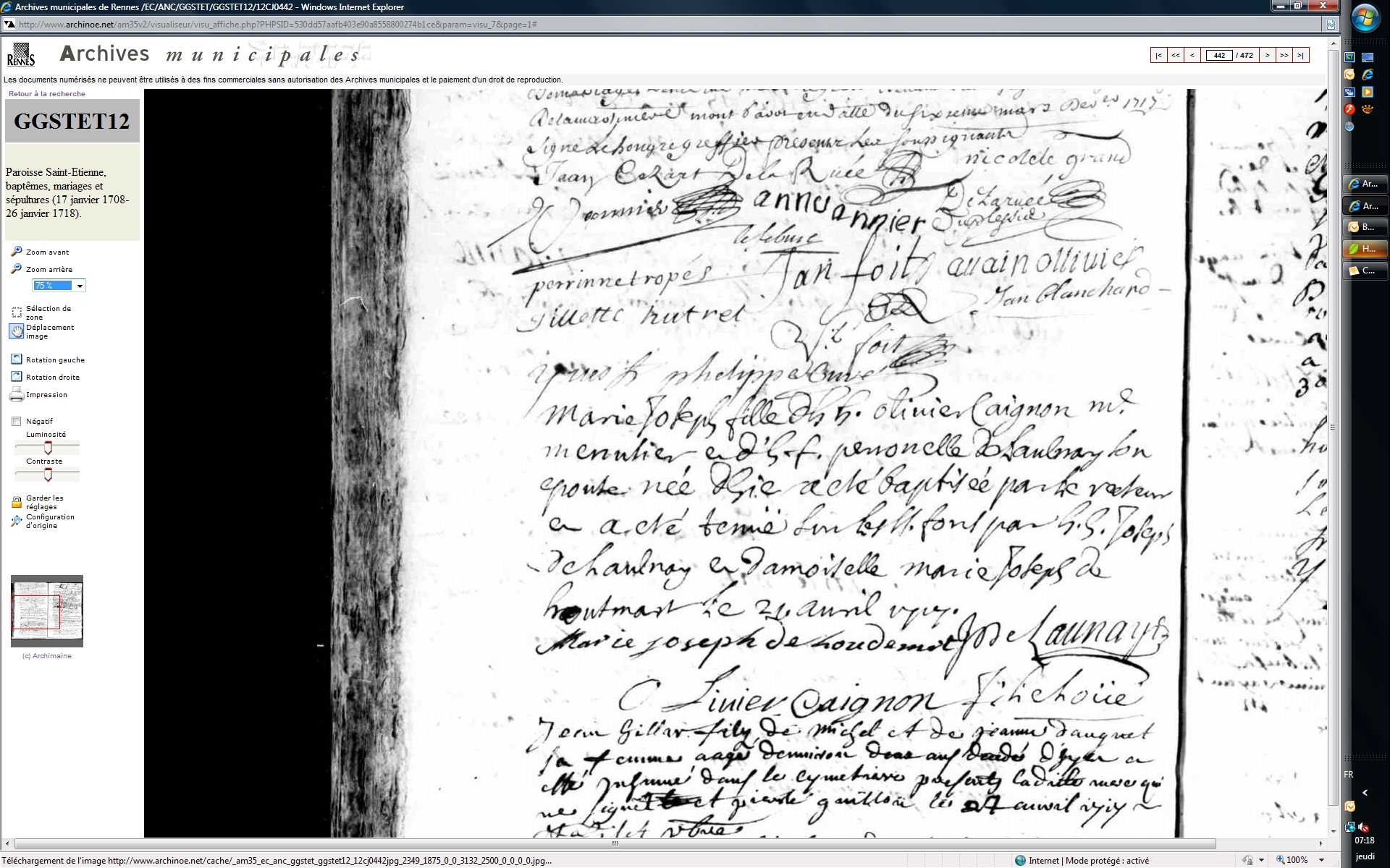 Baptême : 26 avril 1717 à Rennes 35000 Saint Etienne
